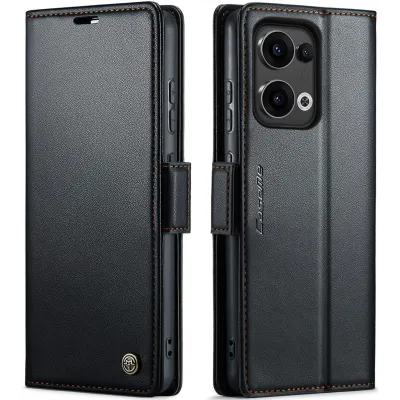 CASEME Retro Texture Book Wallet Klapphülle für Oppo Reno13 - Schwarz