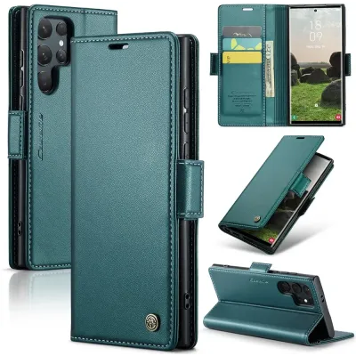 HandyhüllenSamsung Galaxy HüllenSamsung Galaxy S25 Ultra HüllenCASEME Litchi Texture Book Wallet Klapphülle für Samsung Galaxy S25 Ultra - Grün