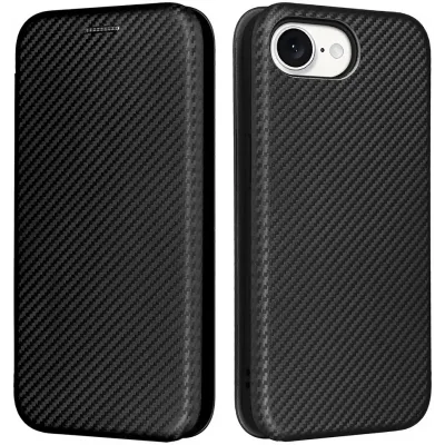 Phonesta Carbon Fiber Skin Book Wallet Klapphülle für Apple iPhone 17e/16e - Schwarz