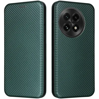 • Phonesta Carbon Fiber Skin Book Wallet Klapphülle für OnePlus 13 - Dunkelgrün