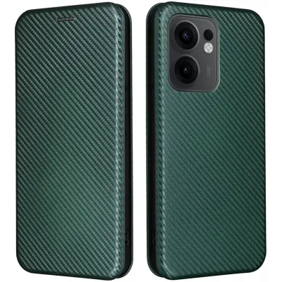 • Phonesta Carbon Fiber Skin Book Wallet Klapphülle für Oppo Reno13 F 4G/5G / Reno13 FS 5G - Dunkelgrün