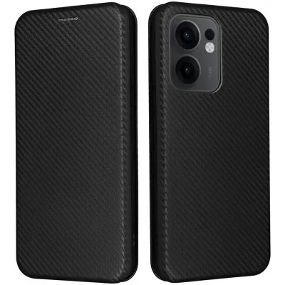 • Phonesta Carbon Fiber Skin Book Wallet Klapphülle für Oppo Reno13 F 4G/5G / Reno13 FS 5G - Schwarz