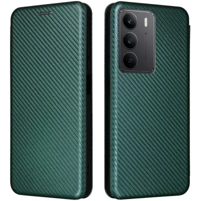 • Phonesta Carbon Fiber Skin Book Wallet Klapphülle für Realme 14x / C75 - Dunkelgrün