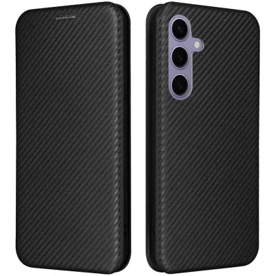 Phonesta Carbon Fiber Skin Book Wallet Klapphülle für Samsung Galaxy S25 Plus - Schwarz