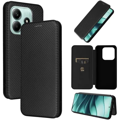 Phonesta Carbon Fiber Skin Book Wallet Klapphülle für Xiaomi Redmi Note 14 4G - Schwarz