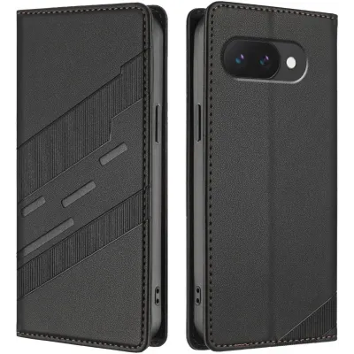 Phonesta Embossed Lines Book Wallet Klapphülle für Google Pixel 9a - Schwarz