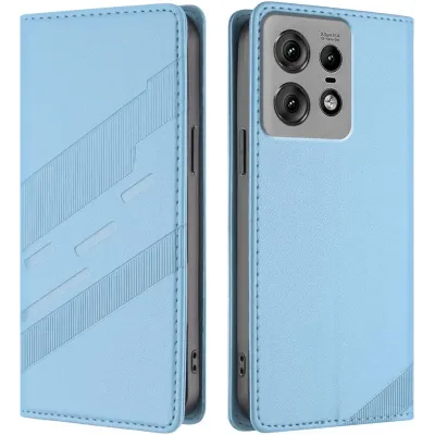 • Phonesta Embossed Lines Book Wallet Klapphülle für Motorola Edge 50 Pro - Hellblau