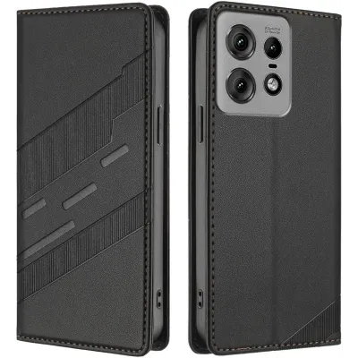 • Phonesta Embossed Lines Book Wallet Klapphülle für Motorola Edge 50 Pro - Schwarz