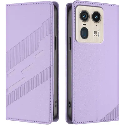 Phonesta Embossed Lines Book Wallet Klapphülle für Motorola Edge 50 Ultra - Lila