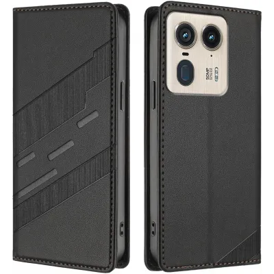 Phonesta Embossed Lines Book Wallet Klapphülle für Motorola Edge 50 Ultra - Schwarz