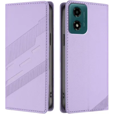 Phonesta Embossed Lines Book Wallet Klapphülle für Motorola Moto G04 / G04s / G24 / G24 Power / E14 - Lila