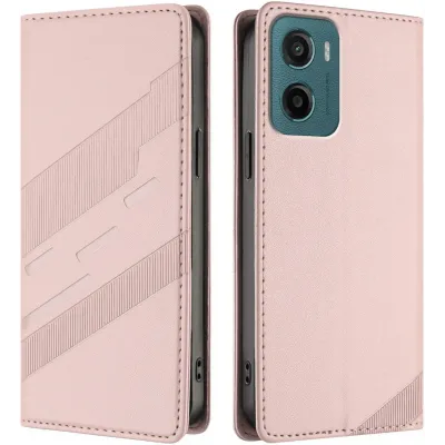 • Phonesta Embossed Lines Book Wallet Klapphülle für Motorola Moto G05 / Moto E15 - Rosa