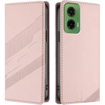 • Phonesta Embossed Lines Book Wallet Klapphülle für Motorola Moto G35 - Rosa