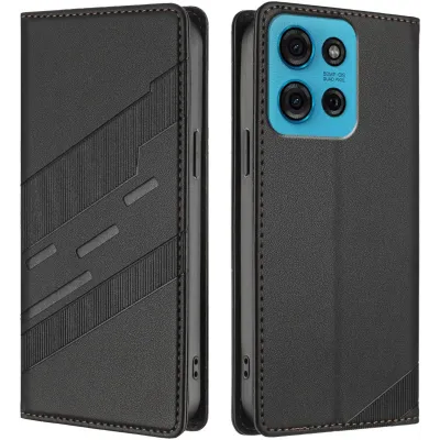 Phonesta Embossed Lines Book Wallet Klapphülle für Motorola Moto G75 - Schwarz