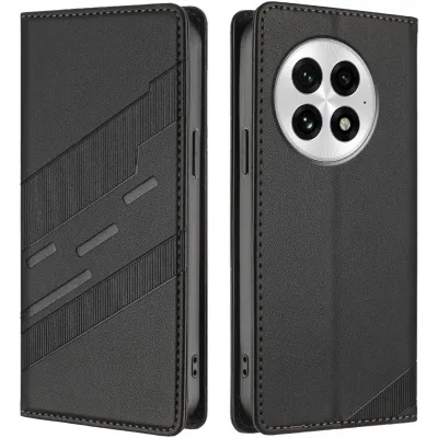 • Phonesta Embossed Lines Book Wallet Klapphülle für OnePlus 13 - Schwarz
