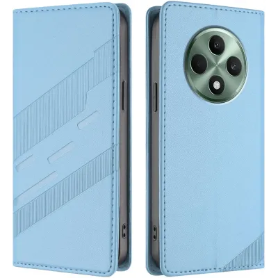 • Phonesta Embossed Lines Book Wallet Klapphülle für Oppo Reno12 F/Reno12 FS - Hellblau