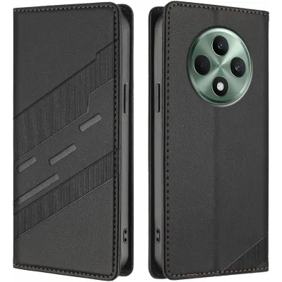 • Phonesta Embossed Lines Book Wallet Klapphülle für Oppo Reno12 F/Reno12 FS - Schwarz