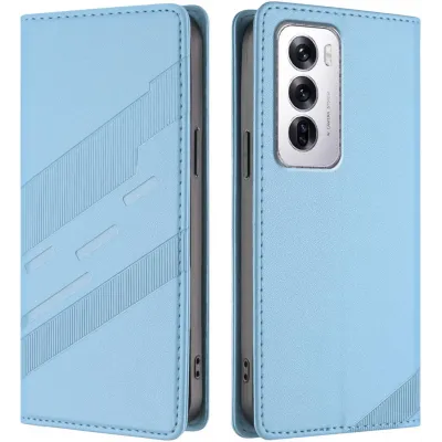 • Phonesta Embossed Lines Book Wallet Klapphülle für Oppo Reno12 - Hellblau
