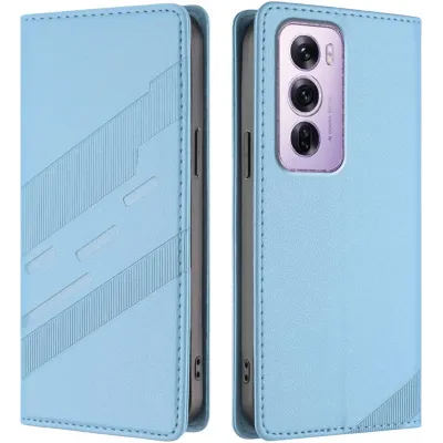 Phonesta Embossed Lines Book Wallet Klapphülle für Oppo Reno12 Pro - Hellblau