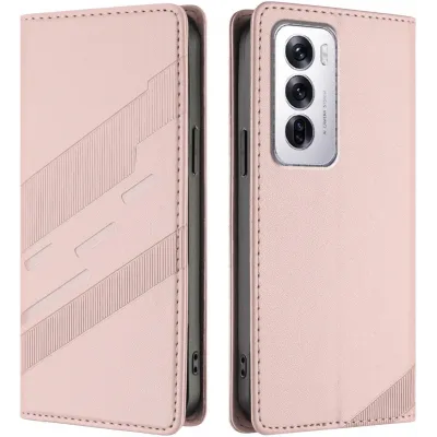 HandyhüllenOppo HüllenOppo Reno12 HüllenPhonesta Embossed Lines Book Wallet Klapphülle für Oppo Reno12 - Rosa
