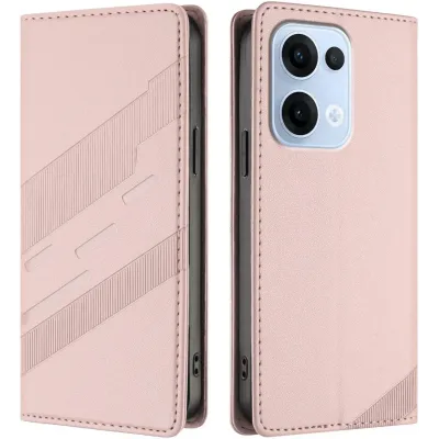 Phonesta Embossed Lines Book Wallet Klapphülle für Oppo Reno13 - Rosa