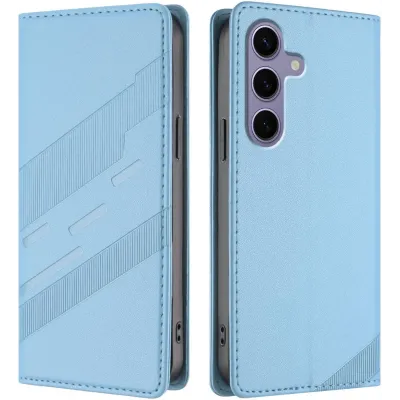 • Phonesta Embossed Lines Book Wallet Klapphülle für Samsung Galaxy S25 - Hellblau