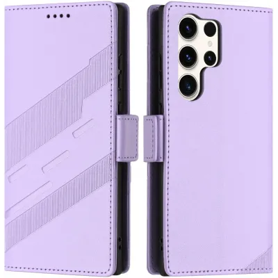 Phonesta Embossed Lines Book Wallet Klapphülle für Samsung Galaxy S25 Ultra - Lila