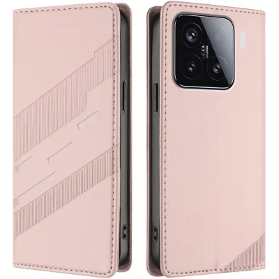 Phonesta Embossed Lines Book Wallet Klapphülle für Xiaomi 15 - Rosa
