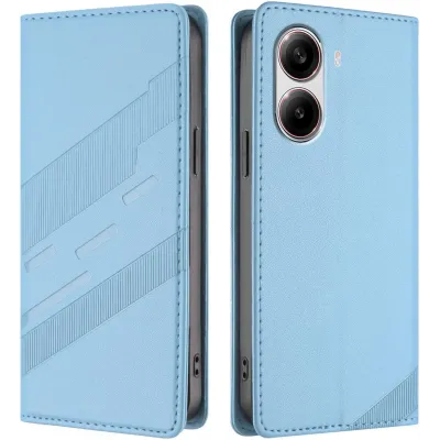 Phonesta Embossed Lines Book Wallet Klapphülle für Xiaomi Poco X7 Pro - Hellblau