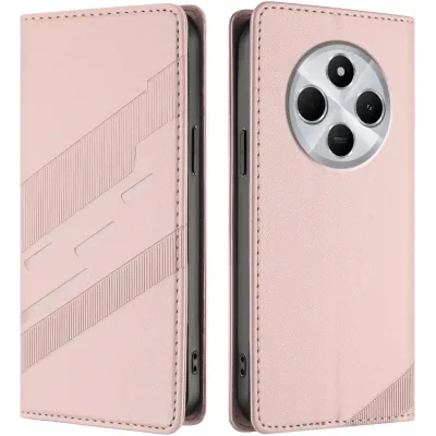 Phonesta Embossed Lines Book Wallet Klapphülle für Xiaomi Redmi 14C / Xiaomi Poco C75 - Rosa