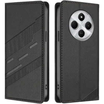 Phonesta Embossed Lines Book Wallet Klapphülle für Xiaomi Redmi 14C / Xiaomi Poco C75 - Schwarz