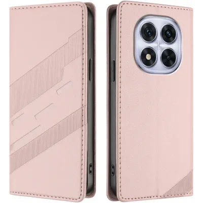 Phonesta Embossed Lines Book Wallet Klapphülle für Xiaomi Redmi Note 14 Pro 4G - Rosa