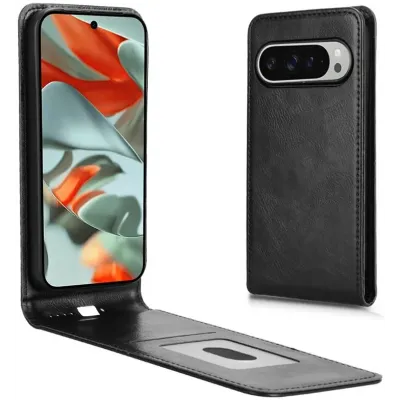 Phonesta Leder Vertical Flip Book Wallet Klapphülle für Google Pixel 9 / 9 Pro - Schwarz