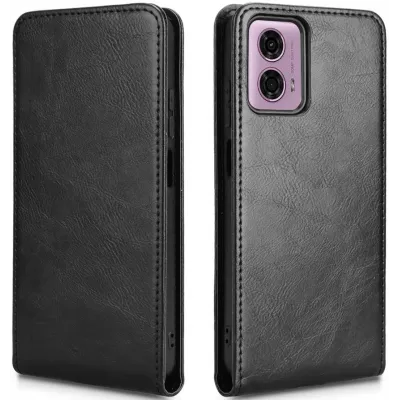 • Phonesta Leder Vertical Flip Book Wallet Klapphülle für Motorola Moto G04 / G04s / G24 / G24 Power / E14 - Schwarz