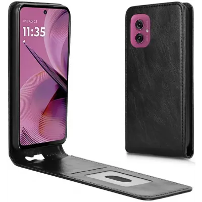 Phonesta Leder Vertical Flip Book Wallet Klapphülle für Motorola Moto G55 - Schwarz