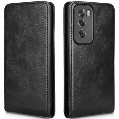 • Phonesta Leder Vertical Flip Book Wallet Klapphülle für Oppo Reno12 - Schwarz