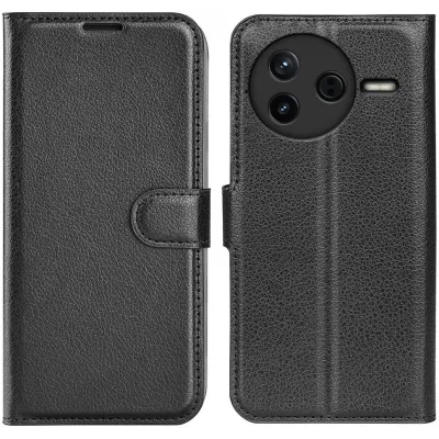 • Phonesta Litchi Skin Book Wallet Klapphülle für Xiaomi Poco F7 Pro - Schwarz