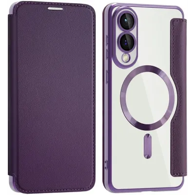 Phonesta Luxury Crystal Book Wallet Klapphülle mit MagSafe für Samsung Galaxy S25 Edge - Dunkelviolett