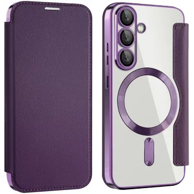 • Phonesta Luxury Crystal Book Wallet Klapphülle mit MagSafe für Samsung Galaxy S25 Plus/S24 Plus - Dunkelviolett
