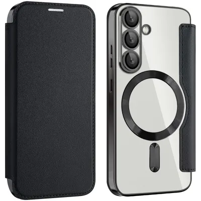 • Phonesta Luxury Crystal Book Wallet Klapphülle mit MagSafe für Samsung Galaxy S25/S24 - Schwarz