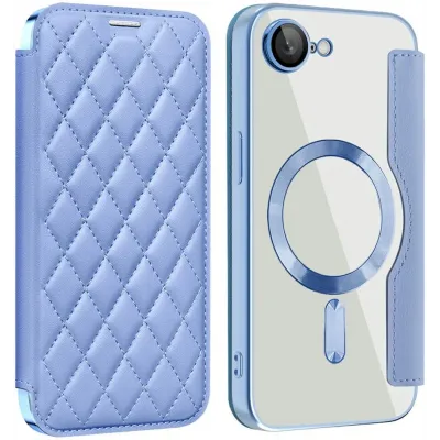 Phonesta Luxury Crystal Puffed Book Wallet Klapphülle mit MagSafe für Apple iPhone 17e/16e - Hellblau