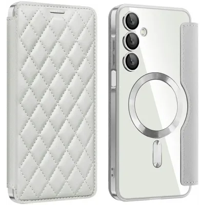 Phonesta Luxury Crystal Puffed Book Wallet Klapphülle mit MagSafe für Samsung Galaxy A16 - Silber