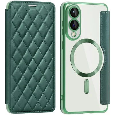 Phonesta Luxury Crystal Book Wallet Klapphülle mit MagSafe für Samsung Galaxy S25 Edge - Dunkelgrün