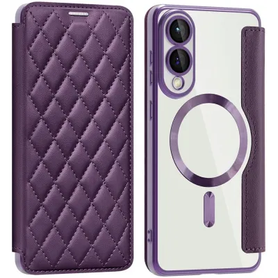 Phonesta Luxury Crystal Puffed Book Wallet Klapphülle mit MagSafe für Samsung Galaxy S25 Edge - Dunkelviolett