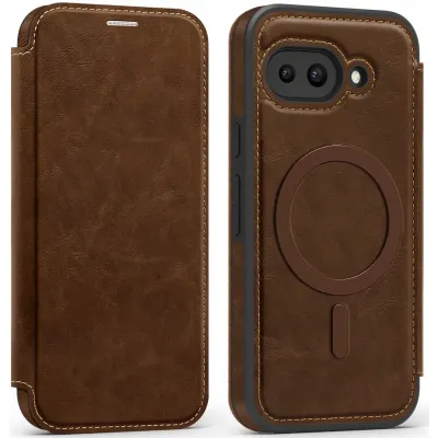 Phonesta Luxury Leder Book Wallet Klapphülle mit MagSafe für Google Pixel 9a - Dunkelbraun