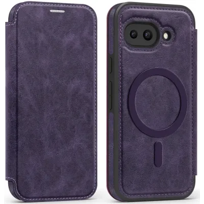 Phonesta Luxury Leder Book Wallet Klapphülle mit MagSafe für Google Pixel 9a - Dunkelviolett