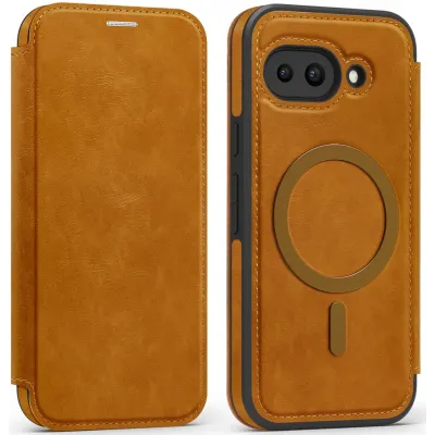 Phonesta Luxury Leder Book Wallet Klapphülle mit MagSafe für Google Pixel 9a - Hellbraun