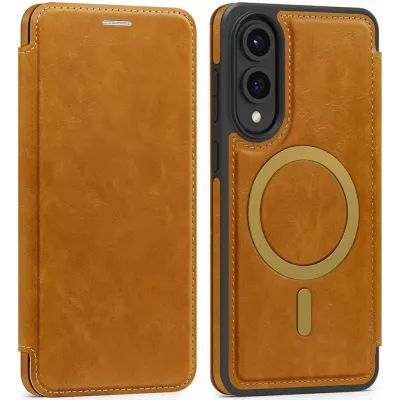 Phonesta Luxury Leder Book Wallet Klapphülle mit MagSafe für Samsung Galaxy S25 Edge - Hellbraun