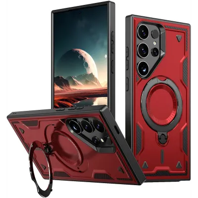 • Phonesta MagLock Armor Back Cover Hülle Ring und MagSafe für Samsung Galaxy S25 Ultra - Rot