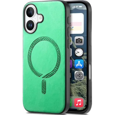 • Phonesta Retro Vegan Leder MagSafe Back Cover Hülle für Apple iPhone 16 Plus - Grün